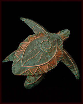 Copperworks Studios creates hand cut turtles with patina for inside or outside use.